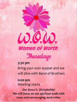 Join us to refuel for the rest of the week with Bible study and the opportunity to share what is happening in your life with others, and to pray for each other.